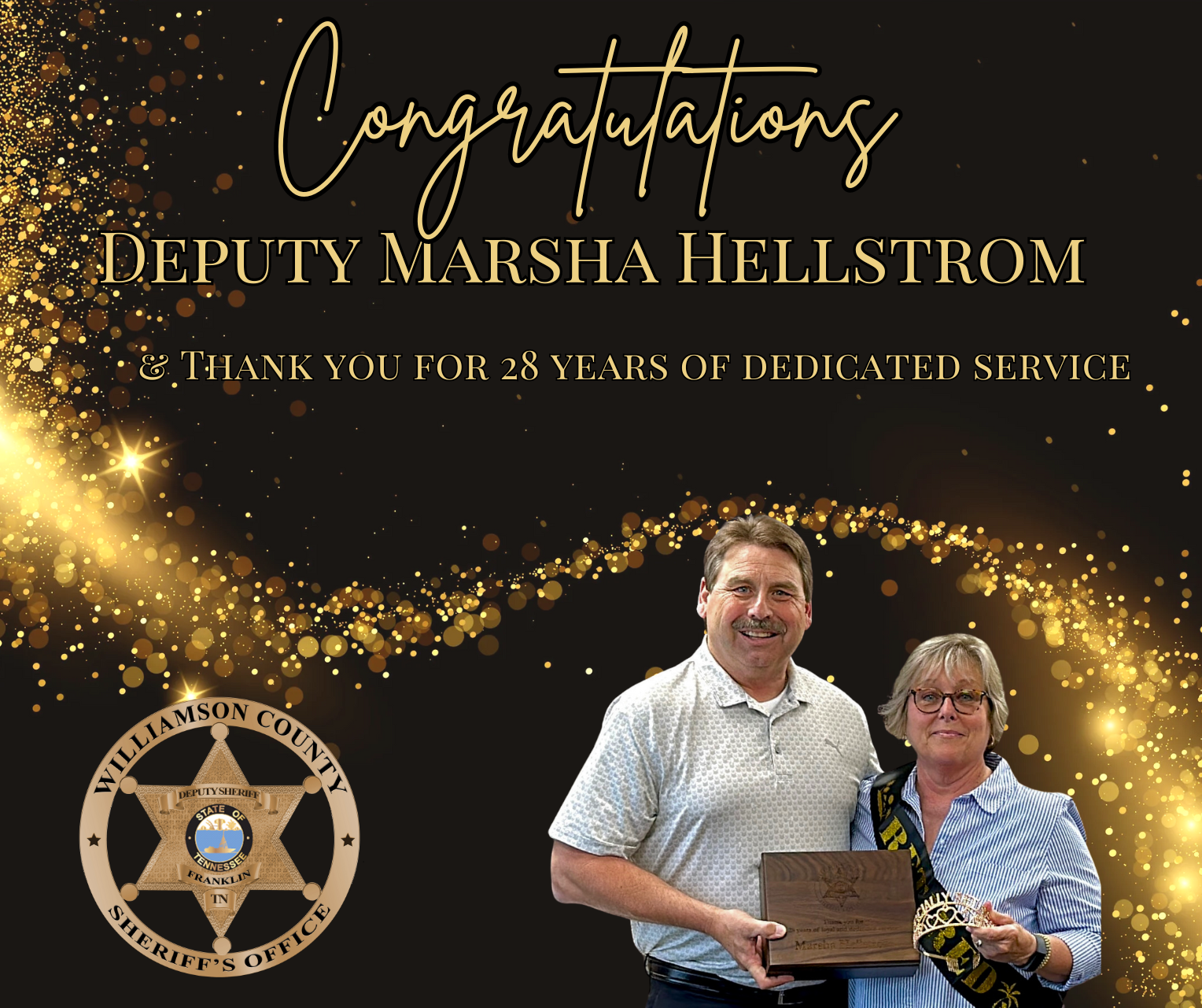 Today, Sheriff Jeff Hughes proudly presented Tina with a plaque ...