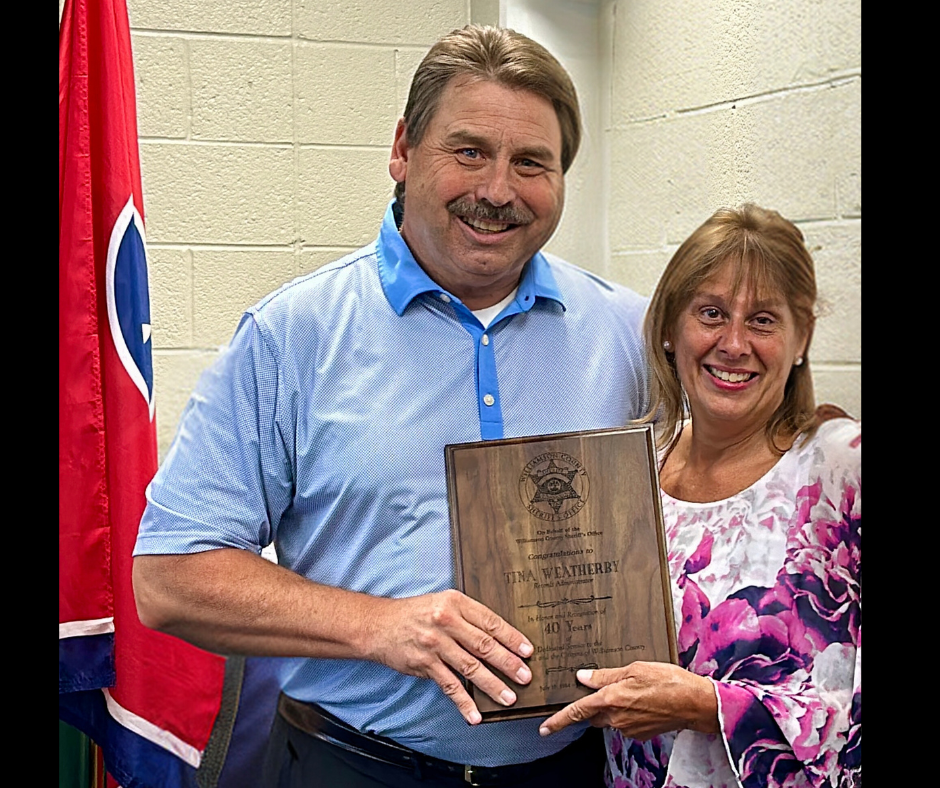 Today, Sheriff Jeff Hughes proudly presented Tina with a plaque ...