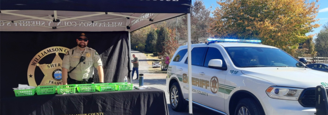 The third aspect of the Crime Prevention Deputy within the Sheriff’s Office is public relations/community events. The Williamson County Sheriff’s Office is highly involved with community events ranging from local events to the Williamson County Fair. A booth is set up at these events, and deputies hand out free items to the attending patrons while answering questions about the duties of the Sheriff’s Office and other law enforcement questions.